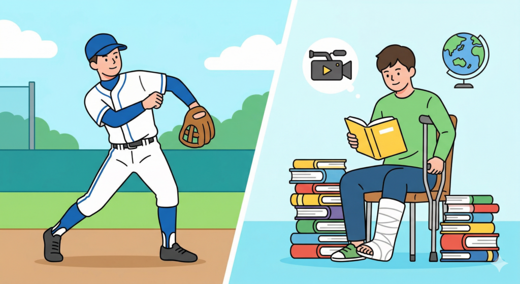 怪我で練習ができない時はサポートとしてチームの練習を見るのですが、明らかに自分よりレベルの高い人間しかいないなと感じ、もし怪我が治って復帰したとしてもレギュラーにはなれないなと思ってしまったんです。